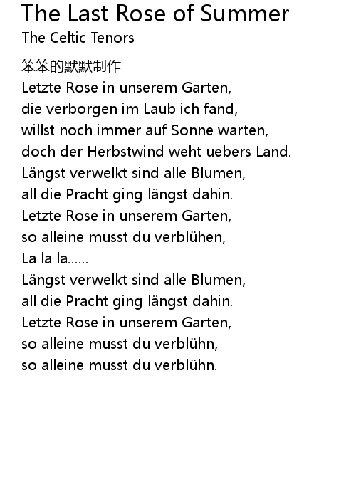 | [00:08.98] | Letzte Rose in unserem Garten, |