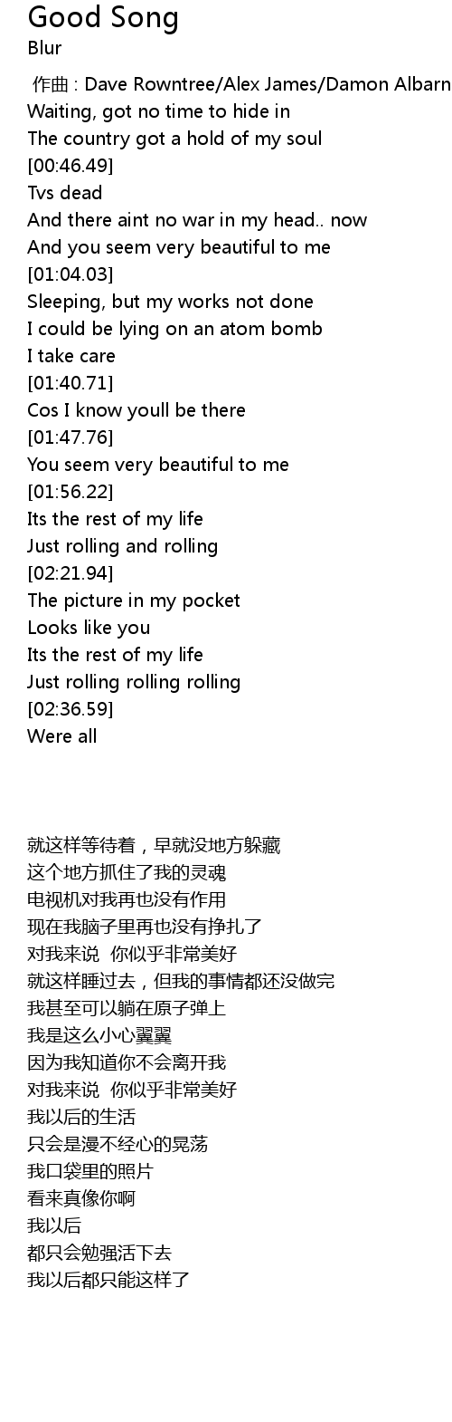 | [00:00.00] | zuo qu : Dave Rowntree Alex James Damon Albarn |