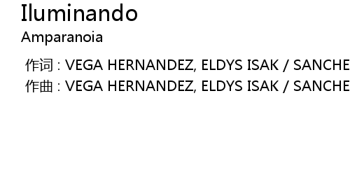 | [00:00.000] | 作词 : VEGA HERNANDEZ, ELDYS ISAK / SANCHEZ PEREZ, AMPARO MERCEDES |