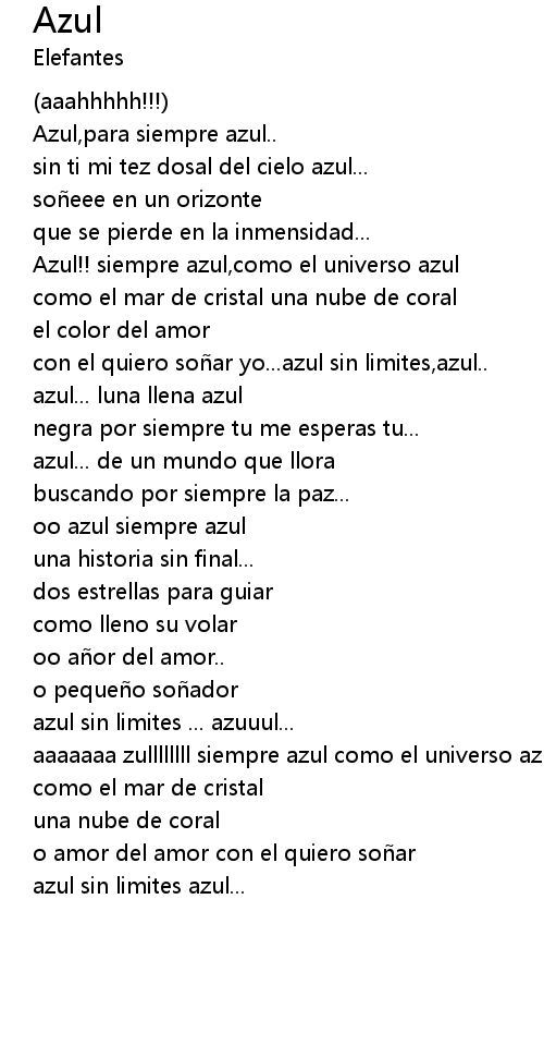 | [01:41.50] | con el quiero so ar yo... azul sin limites, azul.. |