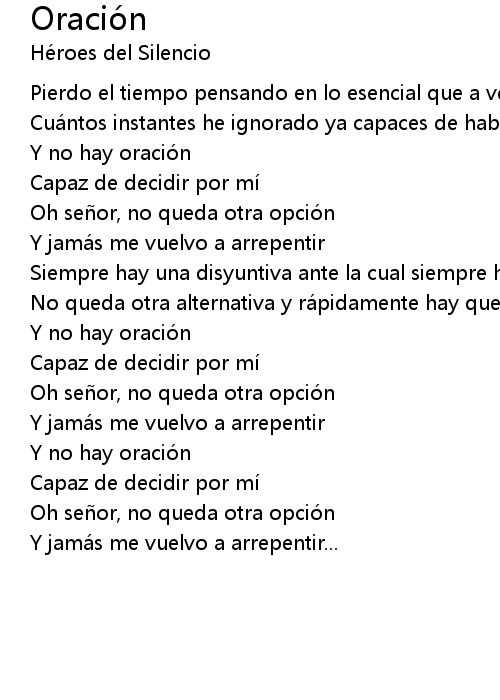 | Song | Oración |