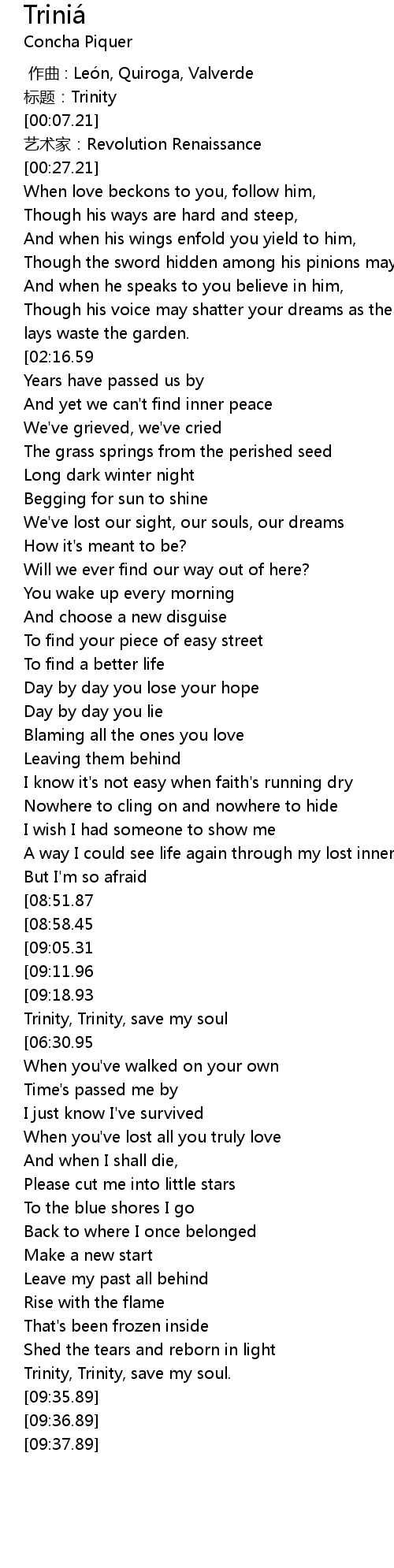 | [04:41.22][08:58.45] | Trinity, Trinity, heal my wounds |