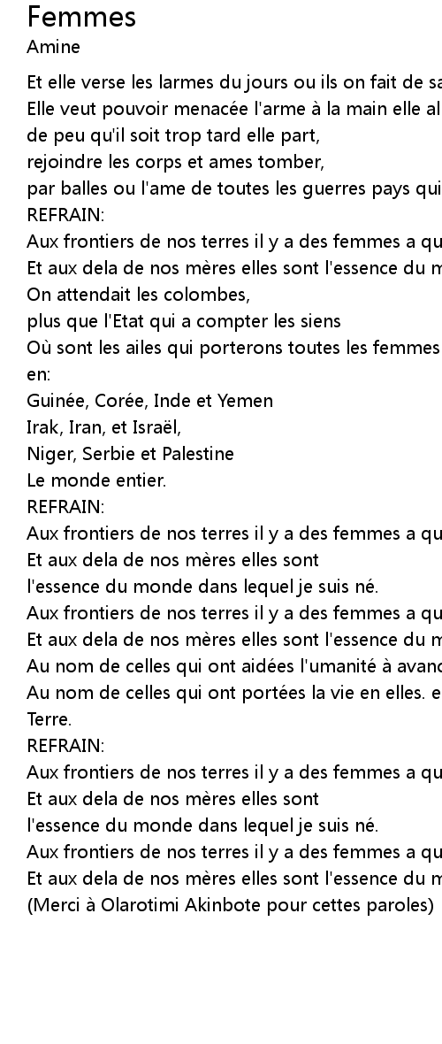 | Aux frontiers de nos terres il y a des femmes a qui ils manques un abris, | |