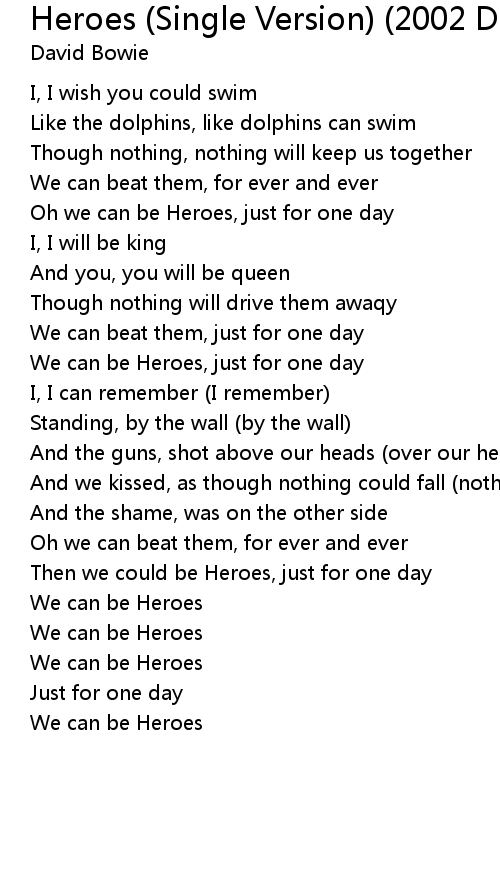 Oh we can be Heroes, just for one day |