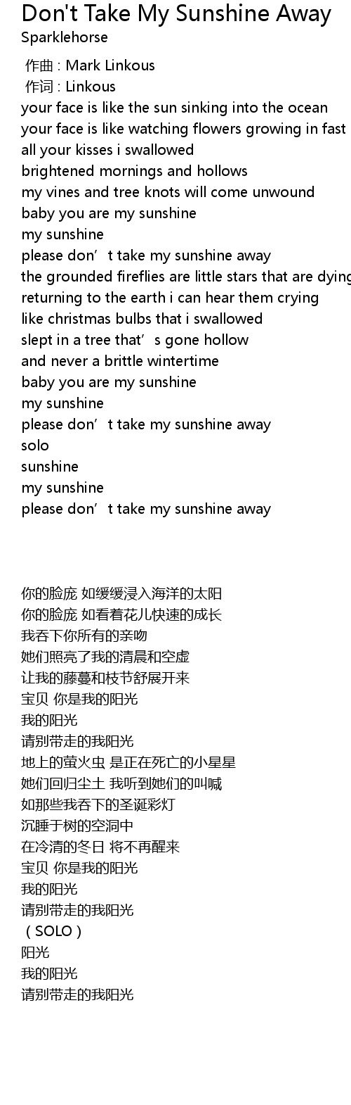 | [00:10.550] | your face is like the sun sinking into the ocean |