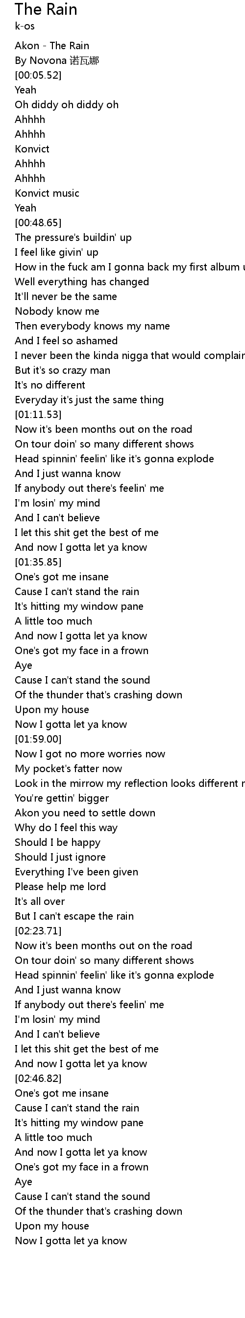 | [00:03.68] | Akon The Rain |