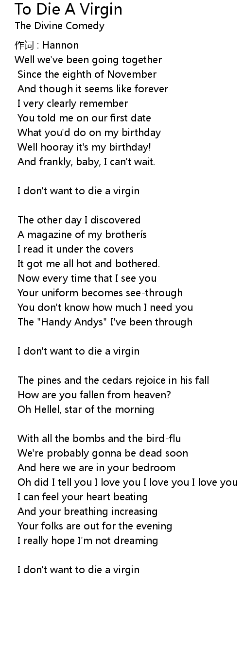 | I don' t want to die a virgin | |