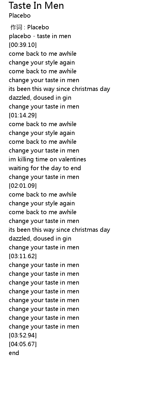 | [00:00.00] | placebo - taste in men |