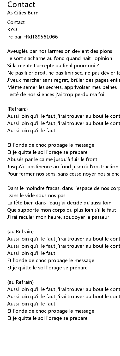 | Aussi loin qu' il le faut j' irai trouver au bout le contact | |