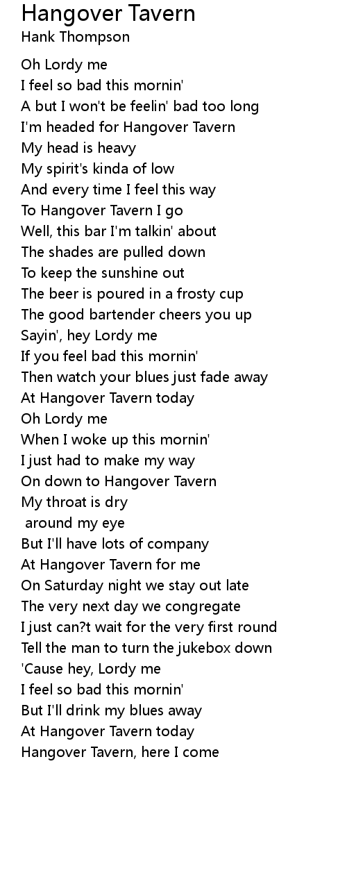 To Hangover Tavern I go |