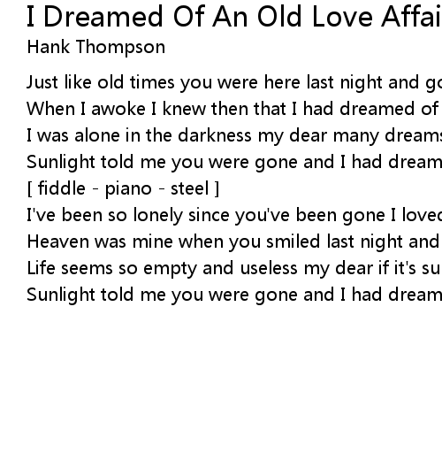 Sunlight told me you were gone and I had dreamed of an old love affair |