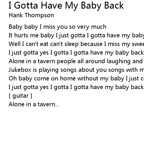 | It hurts me baby I just gotta I gotta have my baby back | |