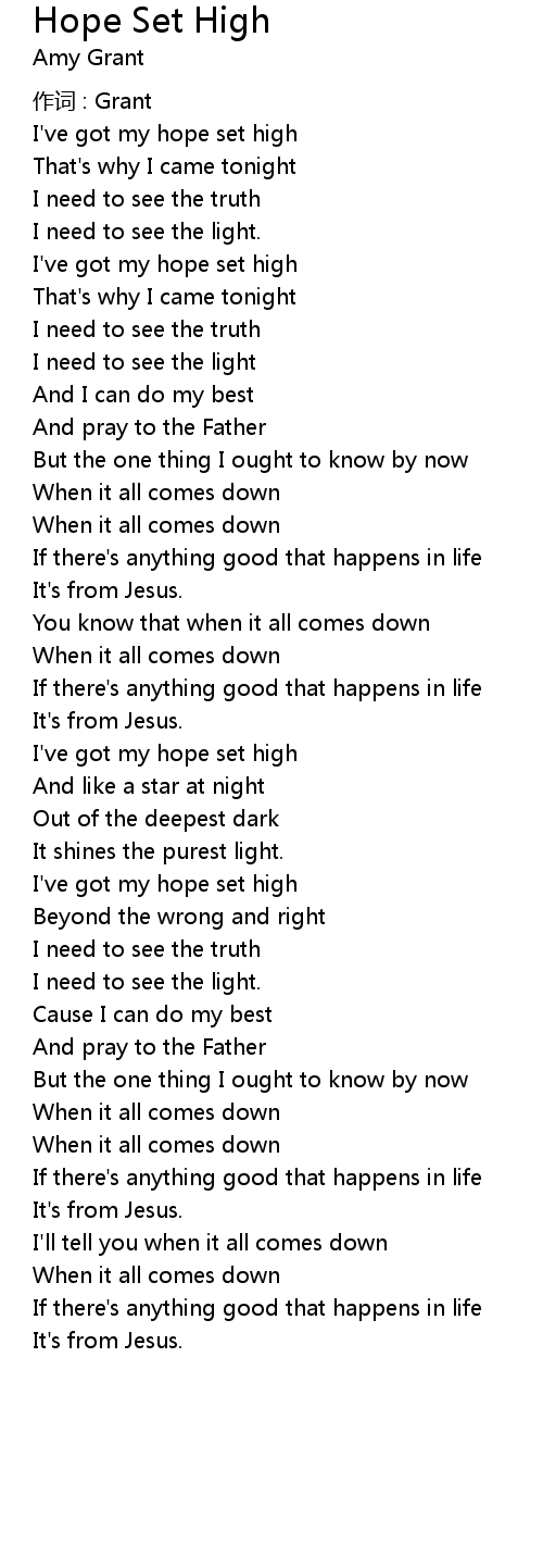 | Song | Hope Set High |