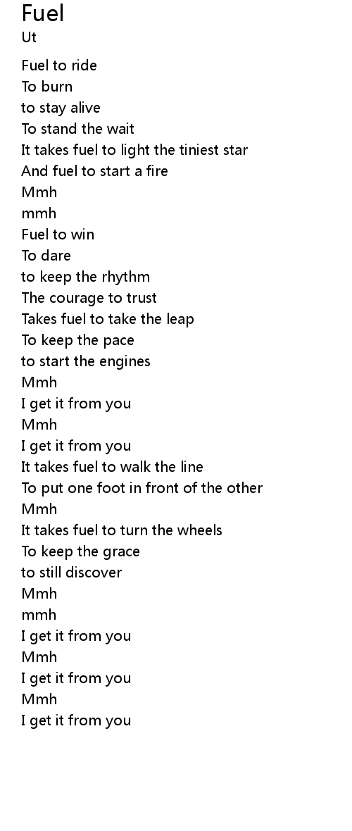 | [00:50.35] | Takes fuel to take the leap |