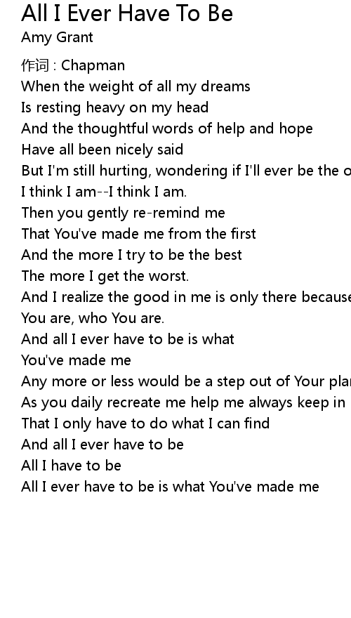 | But I'm still hurting, wondering if I'll ever be the one | |