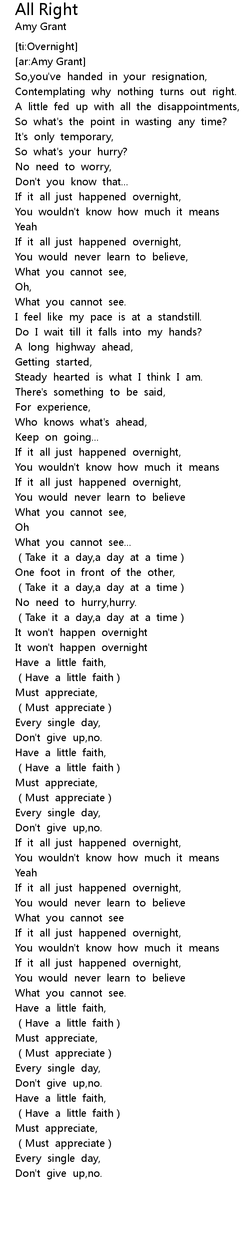 | [00:46.50] | If it all just happened overnight, |