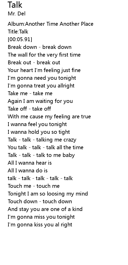 Talk - talk - talk to me baby |