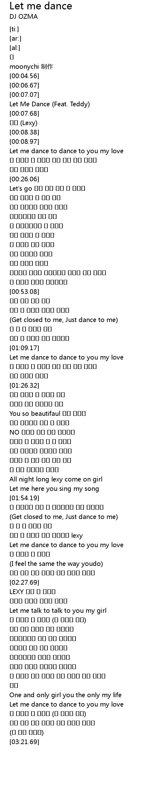| [00:07.28] | Let Me Dance (Feat. Teddy) |