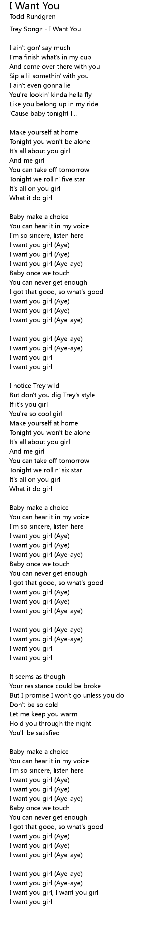 I want you girl (Aye-aye) |