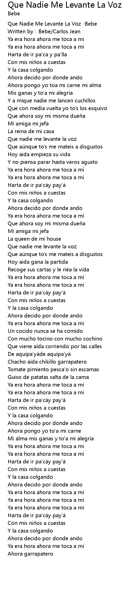 | [00:00.89] | Que Nadie Me Levante La Voz -Bebe |