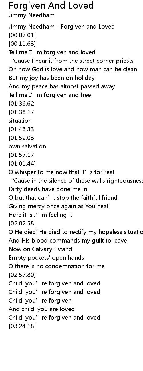 | [00:01.18] | Jimmy Needham - Forgiven and Loved |