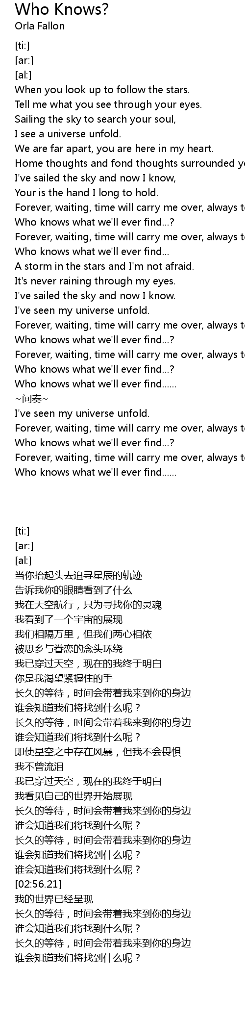 | [02:47.05] | Who knows what we' ll ever find...... |