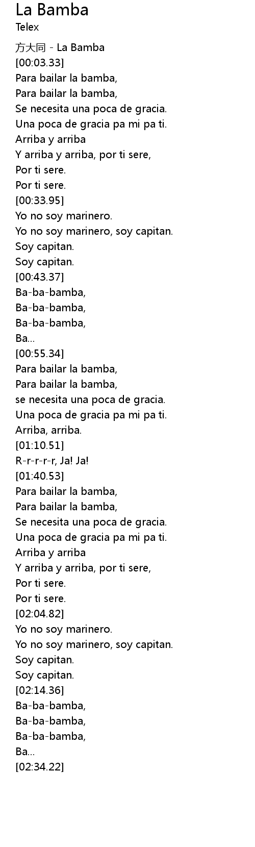 | [00:36.95] | Yo no soy marinero, soy capitan. |
