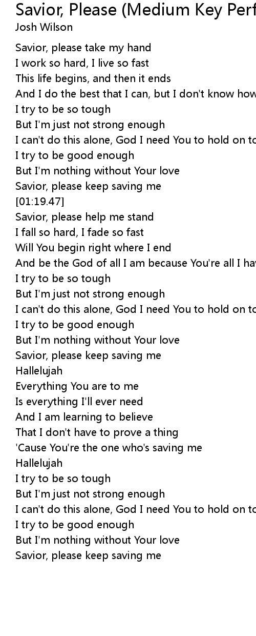 [00:52.86] I can't do this alone, God I need You to hold on to me