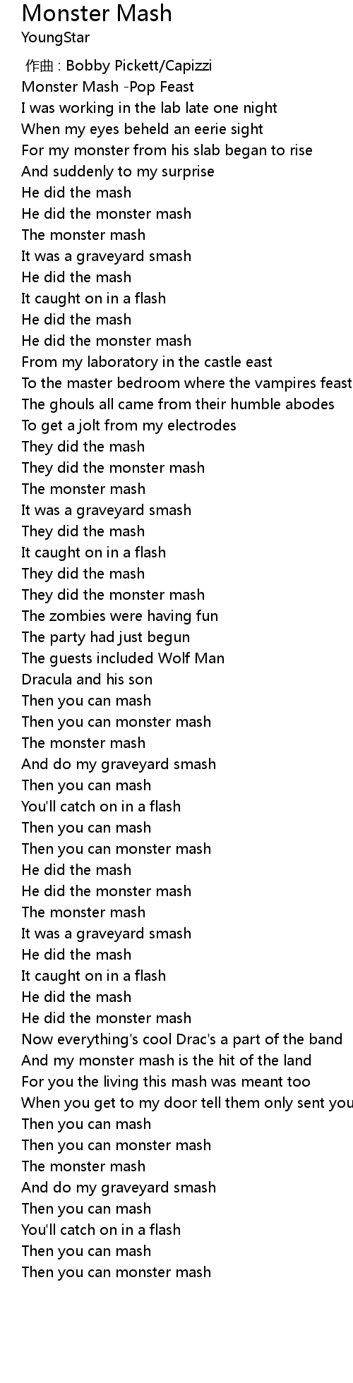 | [02:34.75] | The monster mash |