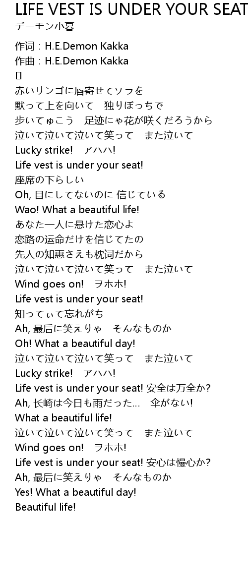 | Life vest is under your seat! ān xīn màn xīn? | |