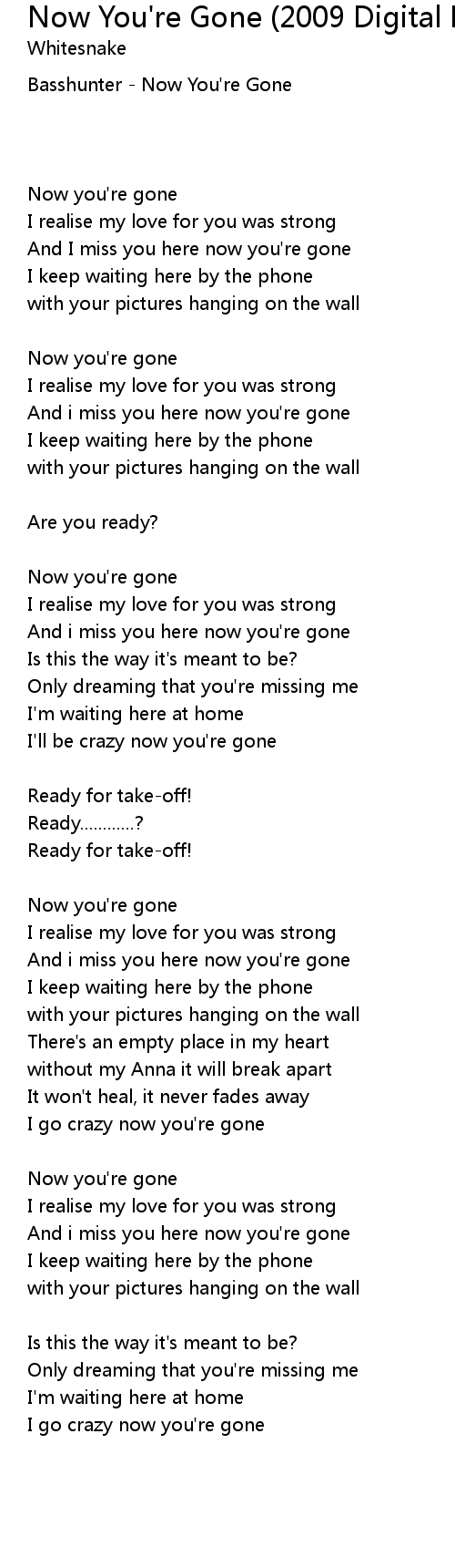 Now You're Gone (2009 Digital Remaster) Lyrics