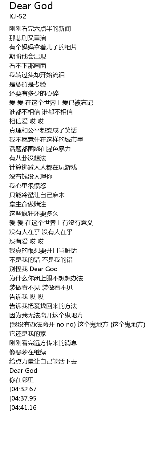 | [04:11.64] | Dear God |