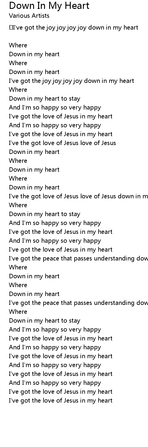 | I' ve the got love of Jesus love of Jesus down in my heart | |