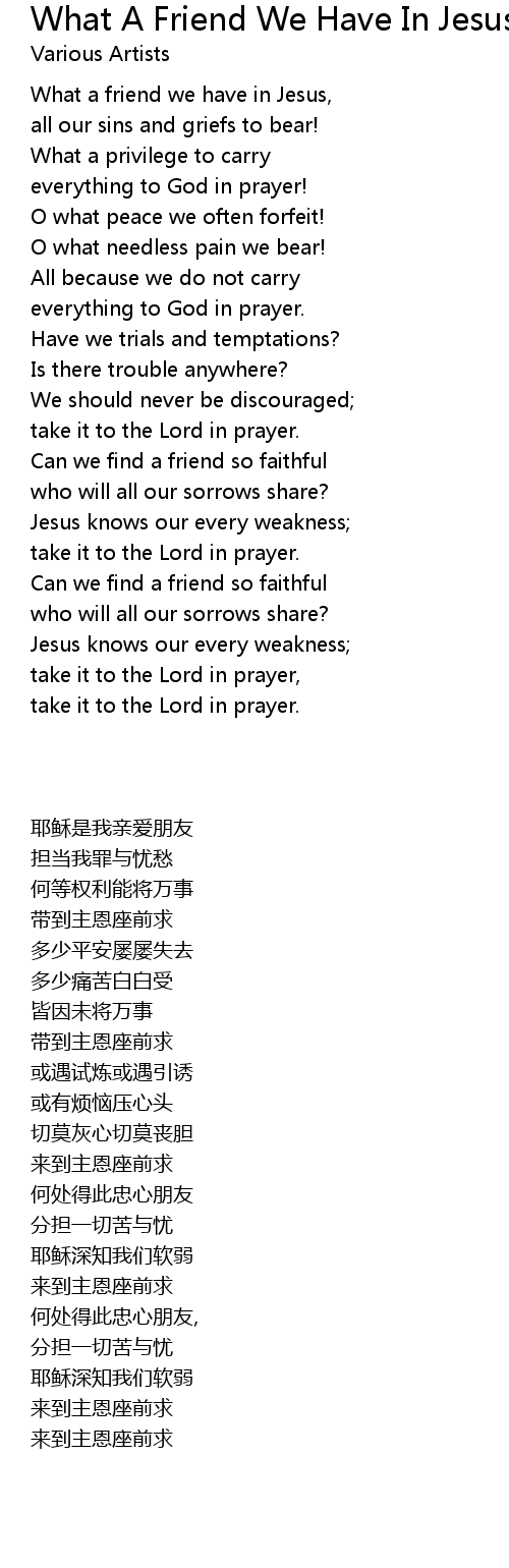 What a friend we have in Jesus, |