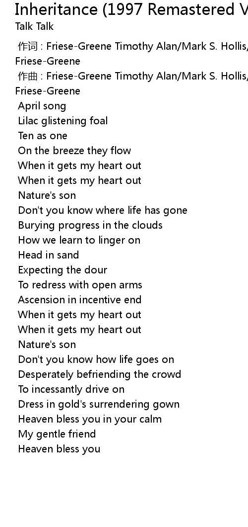 | [00:00.000] | zuò cí : FrieseGreene Timothy Alan Mark S. Hollis Timothy Alan FrieseGreene |