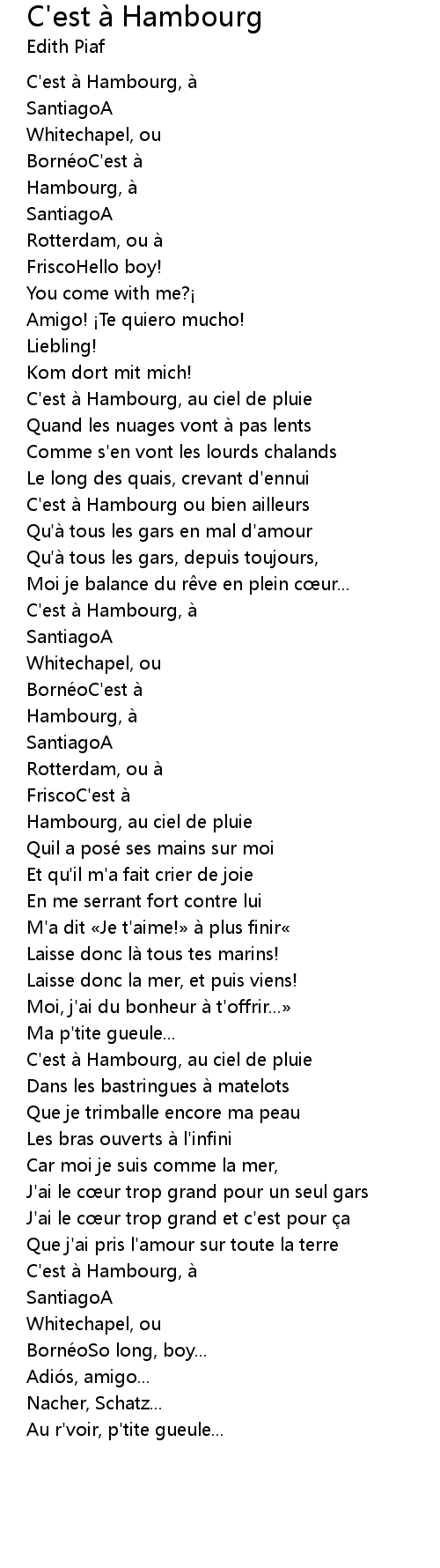| Song | C'est à Hambourg |