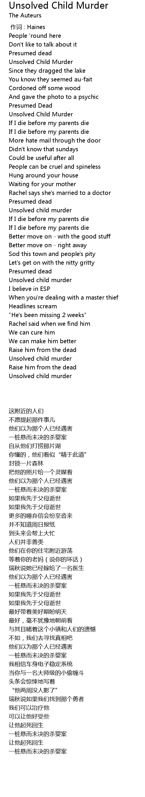 | Song | Unsolved Child Murder |