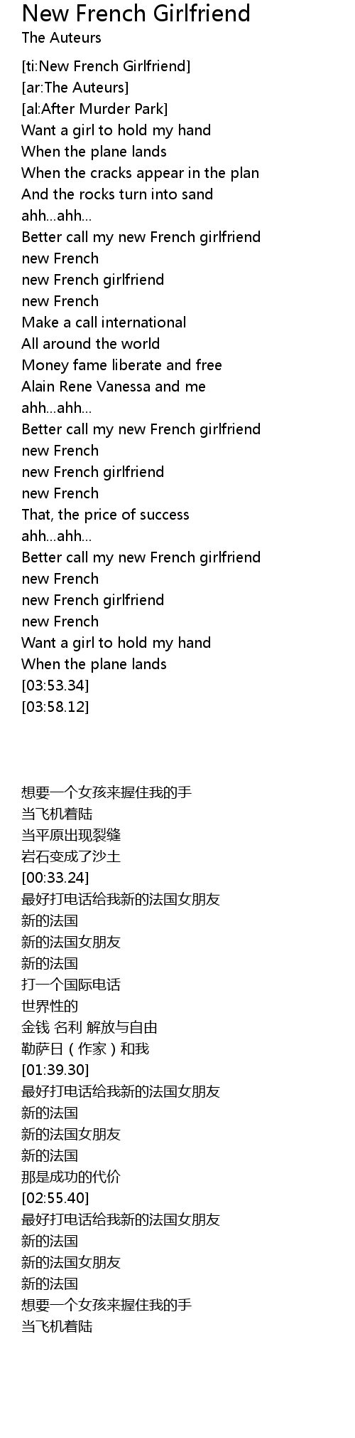 [ti:New French Girlfriend] |