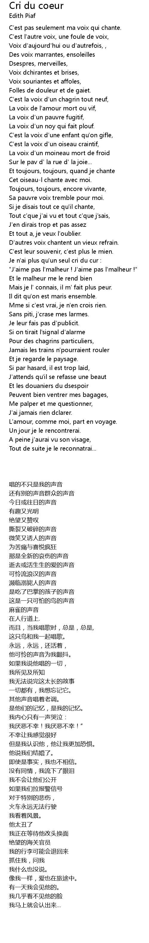 Je n'ai plus qu'un seul cri du cur : |
