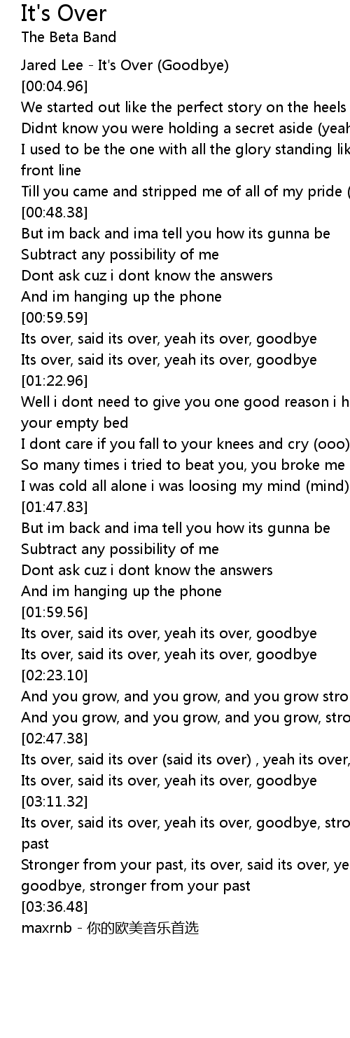 | [00:59.99] | Its over, said its over, yeah its over, goodbye |