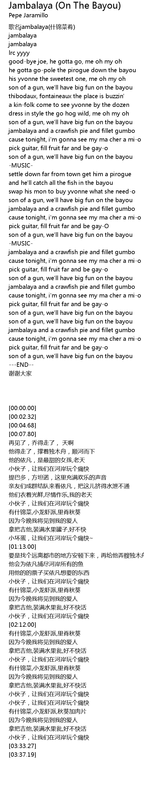 | [00:00.00] | 歌名jambalaya(什锦菜肴) |
