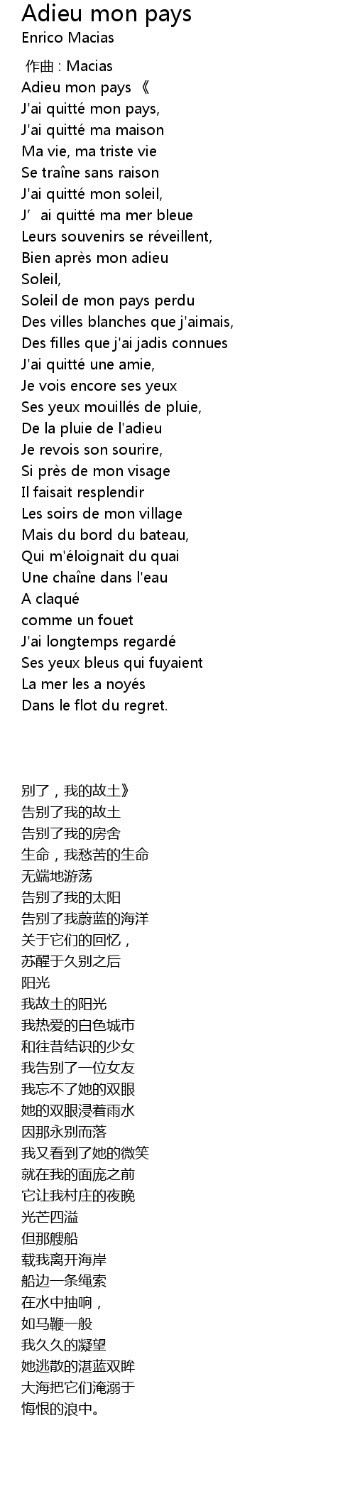 | [00:46.65] | J' ai quitte ma mer bleue |
