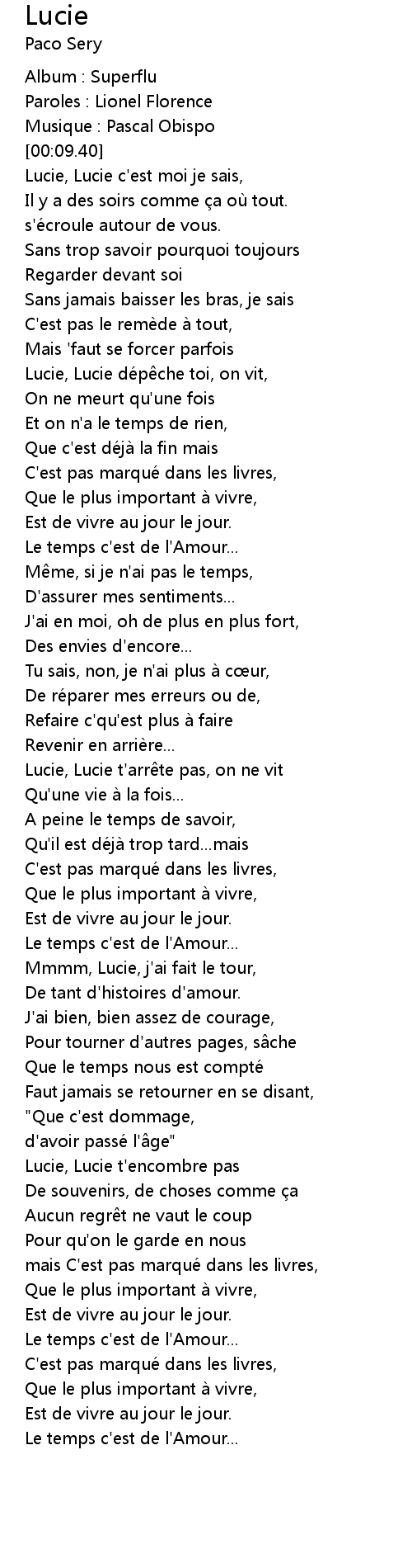 | [01:59.24] | Lucie, Lucie t'arrête pas, on ne vit |