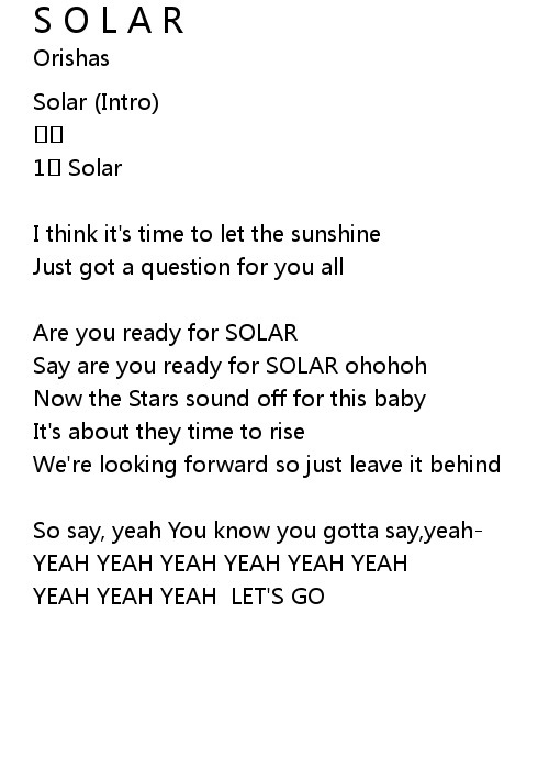 | Song | S O L A R |