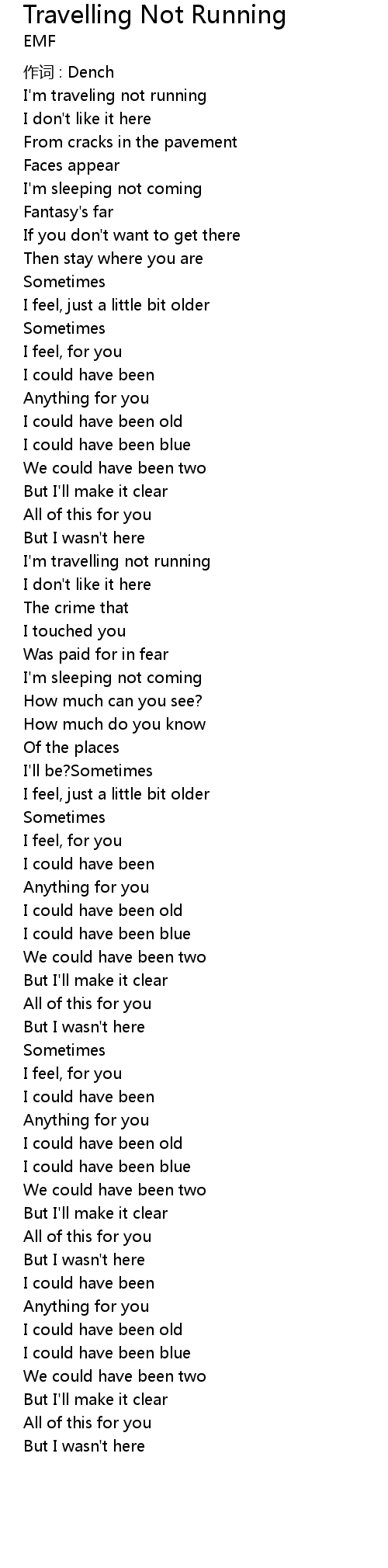 | I' m travelling not running | |