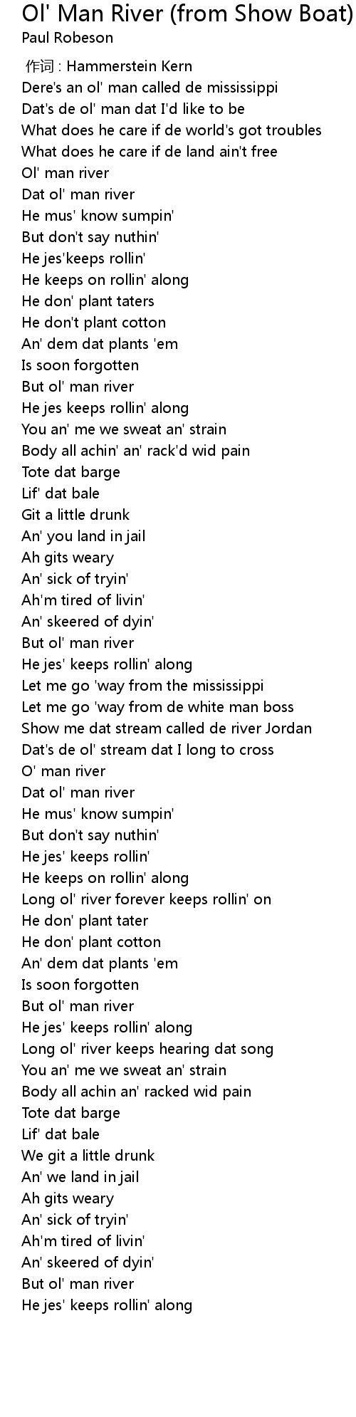 | [00:24.82] | Dat ol' man river |