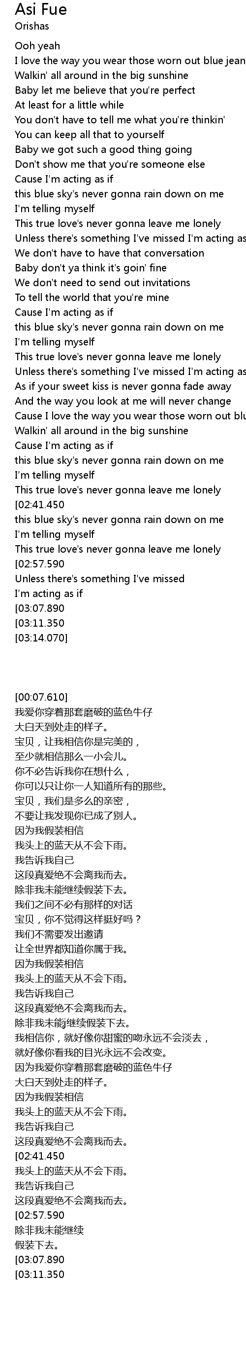 | [02:13.420] | Cause I love the way you wear those worn out blue jeans, |