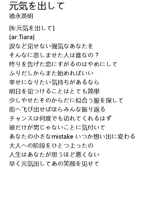 | [01:58.269] | あなたの小さなmistake いつか想い出に変わる |