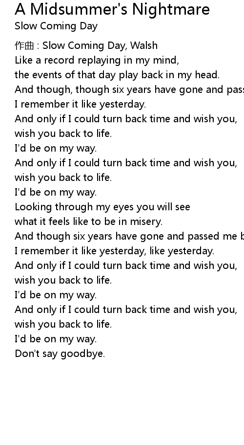 | 作曲 : Slow Coming Day, Walsh | |