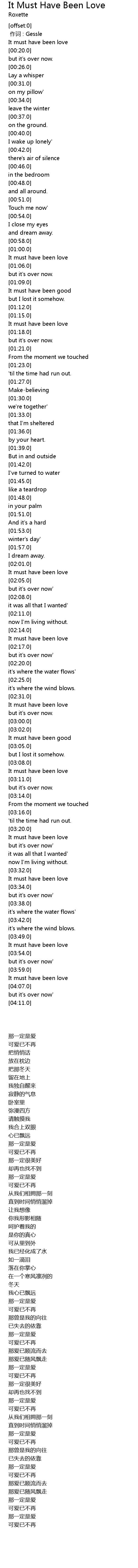 | [00:00.00] | 作词 : Gessle |